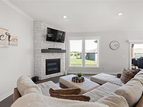 Welcome to your dream home in Foxwood Ranch! This like-new ranch/reverse 1.5 story blends timeless style with modern comforts in a location you’ll love. From the stunning stucco and stone exterior to the covered front porch, every detail invites you in. Inside, rich hardwood floors flow through sunlit living spaces. Just off the foyer, a versatile bedroom or office sits near a beautifully finished full bath. The heart of the home is the open great room with a cozy stone fireplace and a wall of windows overlooking your fenced backyard. The kitchen is a chef’s delight with crisp white cabinets, a large quartz island, stainless appliances, a sleek black sink, and a walk-in pantry that lights up when you open the door. Enjoy casual meals in the breakfast area or step out to the covered deck for morning coffee. The private owner’s suite is a true retreat, featuring a stepped ceiling, plush carpet, and a spa-like bath with a rain shower, double quartz vanity, and a spacious walk-in closet with direct access to the laundry room. Downstairs, the expansive unfinished lower level offers endless possibilities—already stubbed for a bath and filled with natural light from daylight and egress windows. Thoughtful landscaping with river rock beds adds curb appeal, while the community offers a pool, clubhouse, and playground. All this, just minutes from Sycamore Ridge Golf Course, Heritage Park, and Hillsdale Lake—plus it’s in the sought-after Spring Hill School District. >>> Pre-Inspected <<<