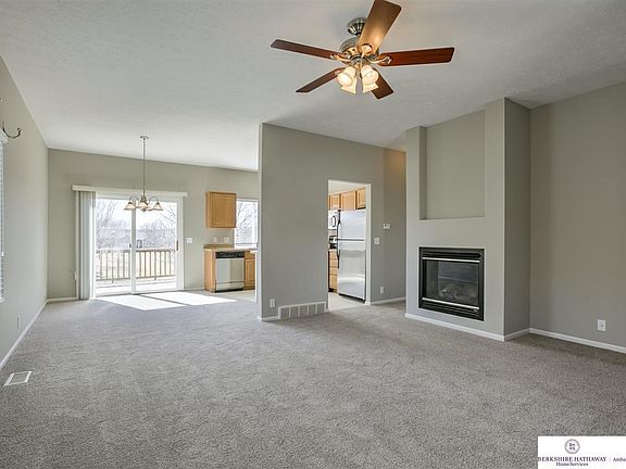 Welcome home to this maintenance free, move in ready townhome. You will find a spacious open floor plan with cathedral ceilings, tons of natural light & gas fireplace. Master with walk in closet and double vanity. New carpet to the main floor with fresh interior paint throughout. Finished lower level with spacious family room and bedroom. New roof. Monthly assessment covers: Lawn care, snow removal, exterior paint every 7 yrs. and yearly ext. window cleaning. Millard West school district.