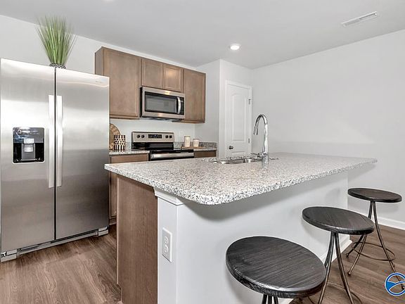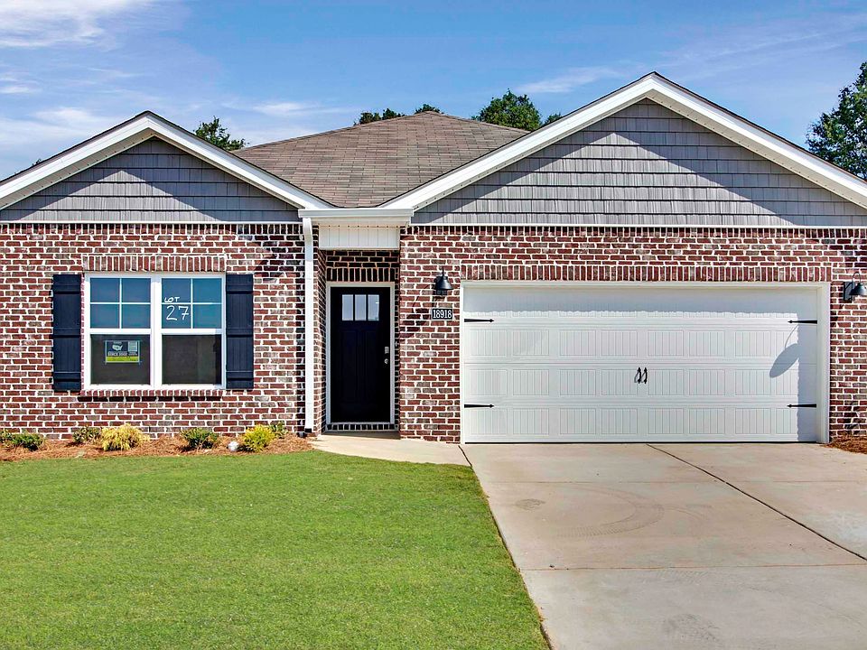 MOVE IN READY! 3-bed, 2-bath single-story home with over 1,200 sq ft and a 2-car garage. The primary suite features a walk-in shower, double vanity, and large closet. The kitchen includes granite or quartz countertops, stainless appliances, a pantry, and breakfast bar, opening to the living and dining area with porch access. The Aldridge includes a Home is Connected smart home technology package - making us America's Smart Home. Photos are for representational purposes.
