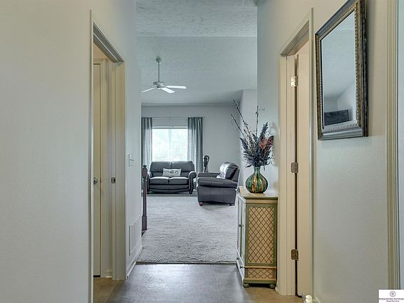 This stunning maintenance free living home nestled on the perfect lot in Millard is waiting for you to call home. It's located on a cul-de-sac. No back yard neighbors and a beautiful, oversized lot with tons of trees will leave a peaceful Zen feeling. You can expect to see beautiful wildlife and picture-perfect sunsets. Enjoy vaulted ceilings, an open concept, updated kitchen, and main floor laundry. The large primary bedroom has a great walk-in closet and bathroom. The walkout basement provides a bedroom and has a bathroom with a shower. The massive living room in the basement has enough space for all your favorite games. Is storage space your favorite thing? Then this is the home for you! There are two large separate storage rooms. If you love the outdoors, then this is also the home for you! Quick lake access, walking trails and parks are nearby!