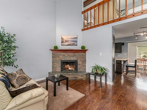 The NEW YEAR brings NEW BEGINNINGS so why not start yours with this SUPER SHARP corner-unit 2 story townhouse is tucked away in a quiet cul-de-sac. Step on in to welcoming great room that features beautiful fireplace, laminate wood floors and vaulted ceilings. Enjoy the updated kitchen with modern cabinets, countertops and breakfast bar along with separate dining area that offers easy access to the incredibly large deck where you can sit and enjoy the large green space/backyard. Other great features include spacious main level master bedroom, walk-in closet and access to full bath with whirlpool tub. The upper level has another spacious bedroom, 3/4 bath, skylights and a loft that could be used as an additional rec room, office, playroom or more. Last but not least extra storage space is located in the attached 1.5 car garage along with washer and dryer that is also included. Homes in this area SELL FAST so hurry in to see this ready to move in unit.