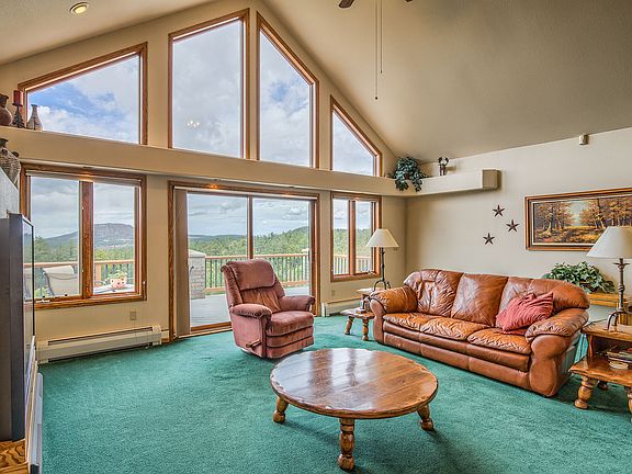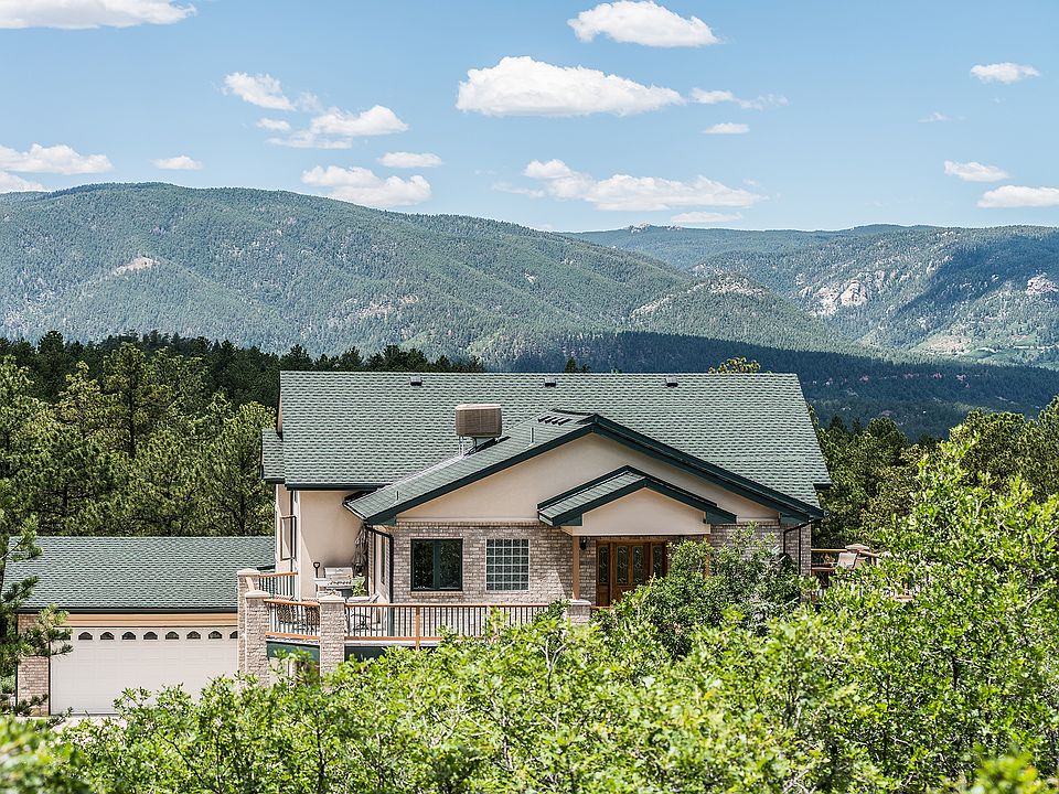 Views Views Views!!!! This 3,583 finished square foot stucco and rock custom walkout ranch with a 4 car garage is perfectly situated on 2.3 wooded acres and features the best views in the prestigious Sterling Pointe neighborhood. The expansive great room boasts 17 ft vaulted ceilings, double sided fireplace and amazing views of the entire front range. The gourmet kitchen features brand new slab granite counter tops and tile back splash which is open to the great room and formal dining room. T