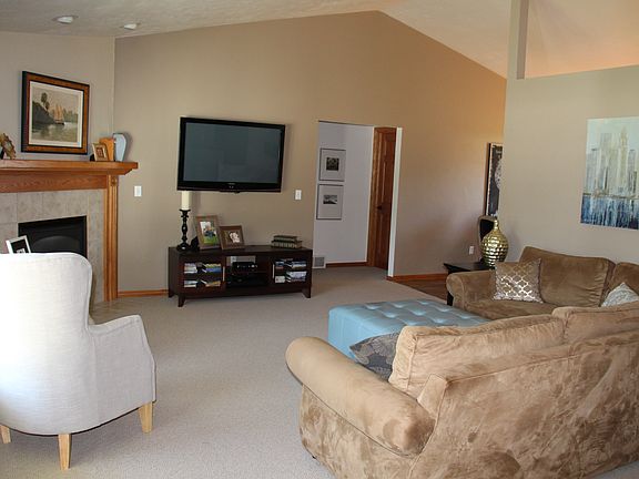 Quality built ranch style home features open concept great room/kitchen/dinning room with cathedral ceilings and split bedroom design. - Great room features gas fireplace. - Kitchen: walk in pantry, ceramic tile, new refrigerator and dishwasher - First floor laundry - ceramic tile - Master with large walk-in closet - 3.5 stall finished garage - Wood blinds throughout - Finished Basement, including: o Custom Bar o Theater Room (could be used as 4th bedroom) o Sauna o Finished bath with large slate tile shower