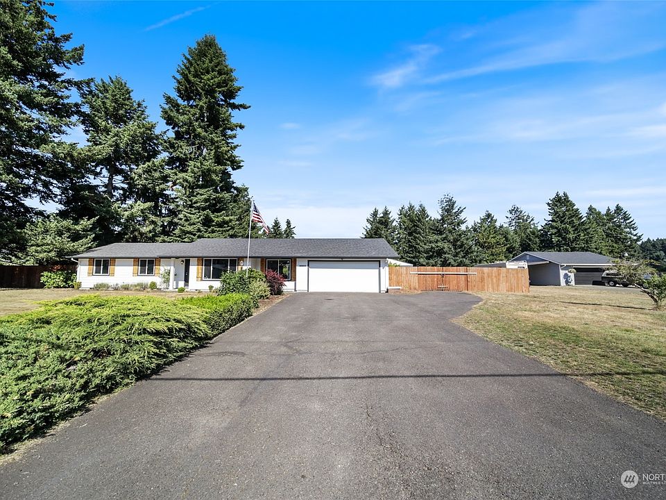 Updated 3 bed 2.5 bath, single level home, just minutes from I-5! With a very large shop, tucked away on nearly an acre, this property has enough space for whatever plans you can dream up! Plenty of room in the fully fenced backyard for activities such as gardening, relaxing under the covered patio, or enjoying the orchard. Primary suite offers its own full bath, as well as two closets. Spacious kitchen offers subway tile backsplash and newer appliances. Large front living room offers a great deal of natural light, with plenty of room to entertain, and plenty of storage throughout the home. The office space/bonus room and adjacent half bath are just part of what make this home appealing!