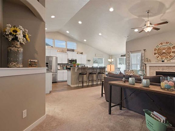 Immaculate Craftsman rancher at River Crossing in a quiet, family friendly community! 3 bedrooms, 2 baths, office/den, and a spacious 2 car garage. Convenient open floor plan with vaulted ceilings, gas fireplace, tastefully chosen colors, stainless appliances & quartz countertops. Covered back patio, fully landscaped yard with sprinkler system, pergola with matching garage trip on the front yard & a beautiful water feature on the back. House has a solar panel system installed.