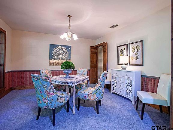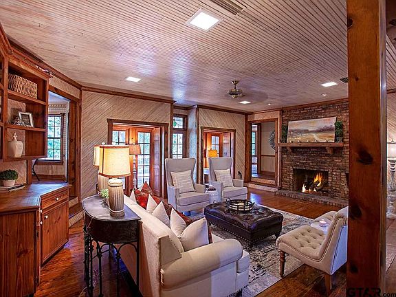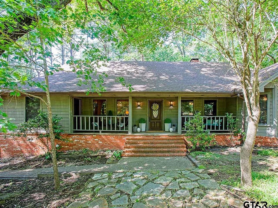 Hidden Cottage on Wooded 1.24 Acres in Country Place, Tyler TX. This rustic style home is hidden in plain sight among shade trees in one of the most unique & lovely neighborhoods in our area. Inviting front porch welcomes you in for a visit. Entry hall offers access to formal living (doors can be closed) and formal dining rooms. Step into the spacious main living area with wall of built-in shelves on one end and brick hearth & fireplace on the other. Original hardwood floors ground the space and run throughout all rooms except bedrooms & formal dining. Rustic rough hewn pillars, beams, cabinetry & trim create a mountain cabin feeling. Efficient galley style kitchen offers a pantry, glass cooktop, recent Kitchenaid oven, dishwasher, trash compactor & breakfast bar. Casual dining area has access to rear covered patio and open deck. The main bedroom is split for privacy, with sitting area & deck access. Two walk-in closets are between bedroom and main bathroom. Seated vanity, separate sinks and shower/tub. The 2 guest bedrooms are on opposite corners of the home for privacy, each with access to full guest bath. Cozy den with window box glass greenhouse for your indoor garden and 2 closets. Utility closet has washer/dryer connections. Covered staircase leads to 3 car side entry garage with lots of storage for your hobbies. Well regarded Whitehouse ISD schools, proud of our Patrick Mahomes quarterback for KC Chiefs! Country Place offers 4 community fishing lakes, several family events and fun activities to meet your neighbors! This quaint home would be fun taking things from "Granny's House" to your dream home!