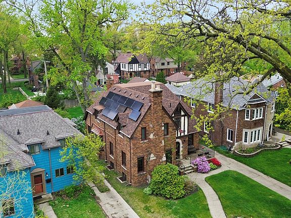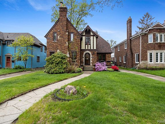 NEW PRICE - OPEN HOUSE THIS WEEKEND! Welcome to 18925 Birchcrest Drive, an exquisite Tudor Revival in Detroit’s historic University District, priced below its April 2025 appraised value of $440,000. * Built in 1929, this architectural gem blends timeless craftsmanship with thoughtful updates for modern living. * Step through the leaded-glass entry into a grand living room highlighted by hand-crafted moldings, hardwood floors, and a stately limestone fireplace. The formal dining room and adjacent library continue the story with ornate plasterwork and built-in leaded-glass bookshelves. Both bathrooms feature original fixtures and coveted Pewabic tile, including a stunning stained and leaded-glass window in the second-floor bath. * Recent improvements include a new roof (2024, $48K with 50-year warranty), SOLAR PANELS (2021), Detroit-made Weathergard windows (2021, 35-year warranty), new sewer line (2023), and Mitsubishi cooling/heating units in the living room, breakfast nook, and primary bedroom for year-round comfort. * Outside, enjoy a beautifully landscaped yard, brick two-car garage, and spacious backyard patio, perfect for entertaining or relaxing under the trees. The unfinished basement offers endless potential for a studio, wine cellar, or recreation space. * Situated on one of the neighborhood’s most picturesque blocks, with patrol service, snow removal, and an active garden club, you’re just minutes from the Avenue of Fashion, Detroit Golf Club, and University of Detroit Mercy. With quick access to Woodward Avenue and downtown, this home pairs historic elegance with everyday convenience. * Homes of this caliber and character rarely return to market, schedule your private showing today!