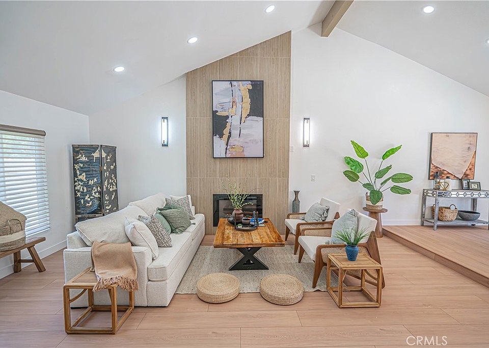 Step into this modern and meticulously remodeled open-concept home, conveniently located in the heart of Reseda, just minutes away from Tarzana and the Northridge Fashion Center. The home offers dual entry, a rare and beautiful feature not seen too often, equipped with a state-of-the-art Thor stove and sleek white waterfall quartz countertops in the kitchen that seamlessly opens up to the expansive living room with high ceilings and an electric fireplace. Newly installed waterproof vinyl flooring flows throughout the home, complimented by LED custom recessed lighting that illuminates every corner and dual pane sliders and windows for energy efficiency. The home boasts fresh, modern paint both inside and out, brand new bathroom vanities, one large bedroom and bath downstairs, plus a bonus room (or enclosed screened patio), with three spacious bedrooms upstairs. The upstairs primary bedroom includes a modern black tiled balcony, a walk-in closet, and an ensuite bath. Save on your water bill with the hassle-free low maintenance yard, equipped with new turf throughout the exterior, newly paved RV parking, a new garage door, and a brand-new A/C system for year-round comfort. Sip your favorite beverage in the rear patio, surrounded by a brand-new wooden fence, and fruit trees, making this an absolutely enjoyable living experience inside and out!