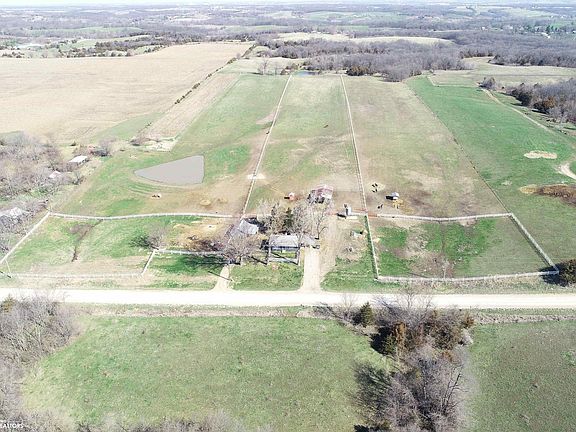 Turn key hobby farm just 5 minutes from town! This 2 bedroom, 1 bathroom, 17.5 acre m/l property sits just 1 mile off of a hard surface road. Currently set up for horses and goats but the possibilities are endless. Coming down the road you won't miss the beautiful continuous white fence that was installed within the last year. The pastures are divided into multiple lots and features run in sheds, a pond & automatic waterers. A bulk bin on a cement slab is located by the pastures. Oversized garage with lean to for storing hay & farm equipment. The septic was inspected & pumped in 2022. The white picket fence in the front yard provides great appeal and is accessible from a side gate or the front door. Inside you will find calling fans & hardwood floors throughout the bedrooms & living room. The bathroom features a walk in shower. The kitchen provides ample space for a dining table. The basement has been repaired recently with stabilizers and has the potential for a second bathroom.