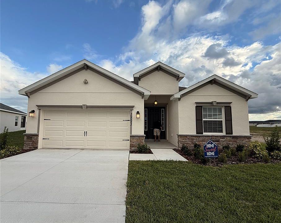 Welcome to the Shelby floorplan by Highland Homes, located in the beautiful community of Geneva Landings in Davenport, Florida. This stunning 4-bedroom, 2.5-bath home offers modern design and comfortable living with an open-concept layout perfect for entertaining. The heart of the home features a spacious kitchen with a large island, elegant quartz countertops, and stainless steel appliances. Enjoy durable and stylish vinyl flooring throughout, combining easy maintenance with timeless appeal. The screened-in porch provides the perfect space to relax and unwind while enjoying Florida’s beautiful weather. Conveniently located near shopping, dining, and major attractions, this new construction home blends style, comfort, and convenience in one exceptional package.