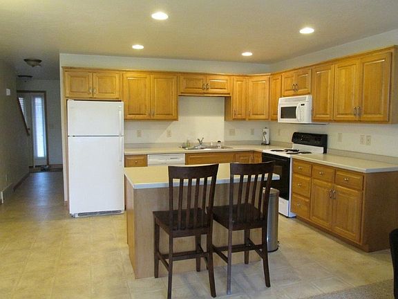 Open concept condo features maple cabinets and center island in applianced kitchen. Large living room with corner gas fireplace and patio doors to concrete patio and open back yard. First floor laundry, large bedrooms with ample closet space, full basement and 2 stall garage. Vickery Meadows Condominium Association and Howard/Suamico School District.