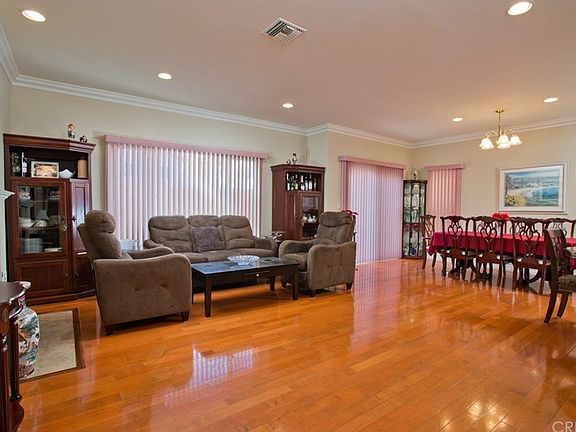 This spacious, with no common walls, townhouse situated in a secure gated community feels exactly the same as a single family residence. This is a ready for occupancy home with a remodeled kitchen that opens to a large living room with a cozy fireplace, modern smooth ceilings, recessed lighting, beautiful hardwood floors and a convenient sliding door leading to your own private patio. The huge master suite has high ceilings, recessed lighting, a walk-in closet and exquisite full bathroom with double sink vanity, bathtub and separate shower. In addition, there are 3 more well-sized bedrooms and full bathroom upstairs for your family and a powder room downstairs for your visiting guests. But wait, there is more: you?ll enjoy a separate laundry room, finished attached double garage for 2 cars with a direct entrance into your home. There is newer paint throughout, and crown moldings to add a finishing touch. The community offers a large swimming pool and SPA, perfect for entertaining your guests, and a play area for the children. This is really a one of a kind property. Please do not wait or you?ll miss out on this dream home.