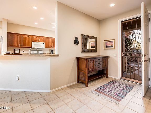 This expanded freshly painted Borgata boasts stunning mountain views, a private casita, and a 3-car extended garage. Featuring the popular split floor plan, this home offers 2014 square feet of living space plus a 247-square-foot hobby casita, n extended breakfast nook with a door leading to the front courtyard enhances the living space. The extended primary suite includes a bay window, a spacious walk-in closet, and a water softener for added convenience. Landscaping has been refreshed as well as new watering system. Enjoy breathtaking mountain and sunset views with no rear neighbors. Take advantage of the community's exceptional amenities, including 4 resident-owned golf courses, 22 pickleball courts, and scenic walking and biking trails.
