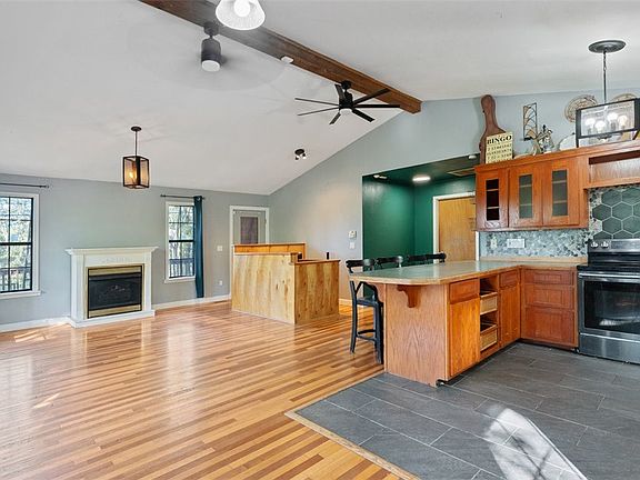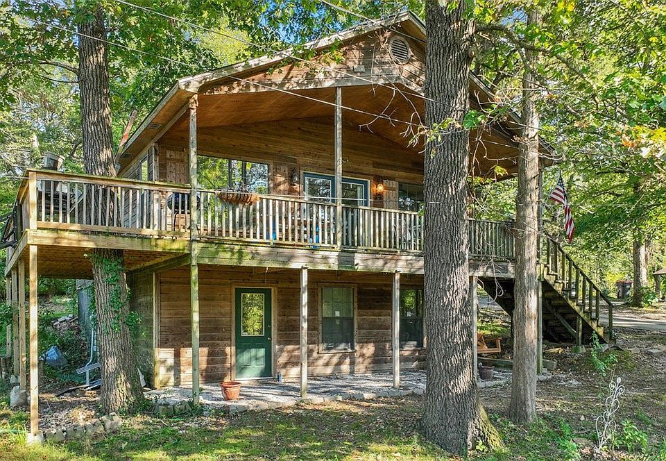 Just 0.4 miles from Beaver Lake in the Beav-o-Rama area, this cedar-sided home offers rustic charm, generous space, and versatility. The main level features two bedrooms along with an open kitchen and living room centered around a fireplace, plus access to a wraparound porch and balcony for relaxing among the trees. A spiral staircase leads to the lower level where you’ll find a second living area along with two unfinished rooms, providing the perfect opportunity to finish them out as bedrooms, offices, or flexible living spaces to fit your needs.
