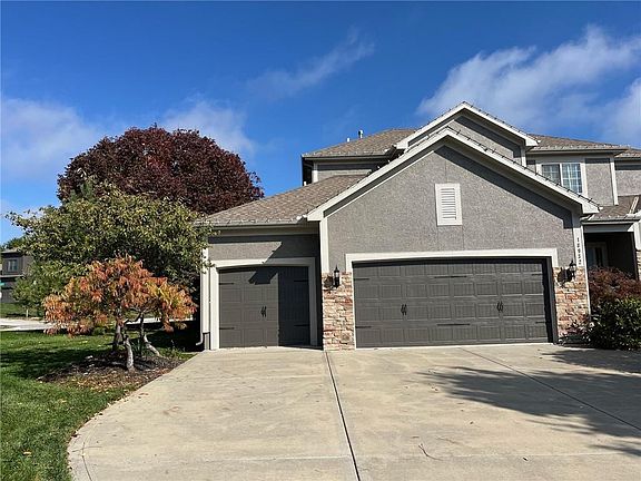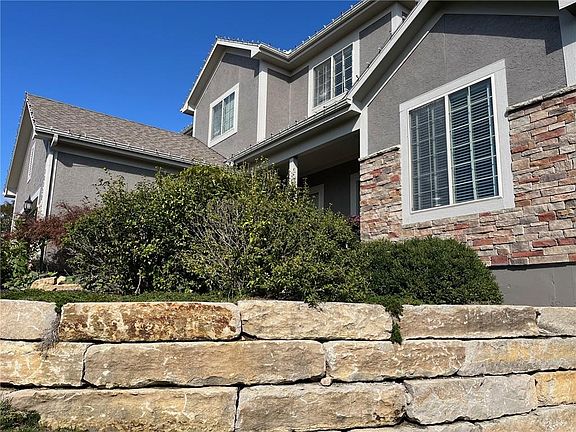 Beautiful "Cherry Creek II" plan by Summit Custom Homes. This 1.5 story plan in Falcon Valley features a spacious primary bedroom & bath on the main level. Also, on the main level you'll find the kitchen, vaulted great room w/see through fireplace, breakfast room, an office, laundry room, and all of this charm steps out onto a covered patio w/tons of beautiful landscaping to enjoy & relax within. Upstairs, there are (3) ample sized bedrooms w/2 full baths. In the lower level, you'll get to experience the comfortable ambience of the beautiful rec room w/Bar as well as a (5th) bedroom and 4th full bath. This home has been lovingly maintained and lived in by the original owners. Exterior was just painted, new carpeting on the stairs and in main level office. This gorgeous house sits upon a cul de sac lot w/access to the sidewalks for walking your dog or just taking a leisurely stroll. Great location in Lenexa. Close to highways, schools, dining and more.