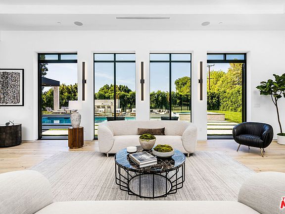 An architectural masterpiece and arguably one of the most unique and special properties in all of Los Angeles. The centerpiece of this incredible property is a 60 ton floating and spiraling staircase that rises from the 2,000 sq.ft. basement, to the second floor. Absolutely magnificent design, featuring a beautiful 30 foot plus glass entry that flows through to another 30 foot plus rear glass facade which leads to the backyard. The property sits on over half an acre and features a builtin BBQ, sunken fire pit, half basketball court with NBA 3 point line, and lots of fresh grass throughout. The circular driveway gracefully flows from one side to another providing enough space to park plenty of cars. The aforementioned basement features a theater, bar, wine cellar, lounge, and wellness center with dry sauna. A must see!!!!