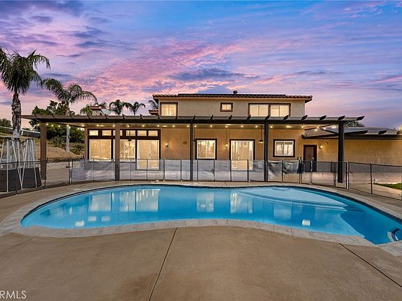 SPECTACULAR 4 ACRE Equestrian Mini-Estate POOL HOME in the Highly Desirable Mockingbird Canyon Community with Endless VIEWS of the Valley, City Lights & Surrounding Hills!! ATTENTION ALL OWNER-OPERATORS, DESERT ENTHUSIASTS and HORSE LOVERS...Plenty of Room for your Trucks, RVs, Boats, Trailers, Horses and More * * OVER $200K in Improvements * * Situated at the END of the CULDESAC and NO MELLO ROOS, NO HOA Fees & LOW LOW Taxes * * EXPANSIVE Floor-Plan offering 3919sqft w/4 LARGE Bedrooms, Bonus Room, Separate OFFICE and 4 Bathrooms * * This Model has a MAIN FLOOR Bedroom with it's OWN Private Bathroom * * Beautifully REMODELED Chefs Quality Kitchen with GRANITE SLAB Counters & Back-Splash, French Antique White Cabinetry, STAINLESS STEEL Appliances, Breakfast Counter for the Kids & Walk-In Pantry * * Formal Living Room & Formal Dining Rooms with SOARING 25ft High Volume Cathedral Ceilings * * UPGRADED Throughout w/REMODELED Bathrooms & Kitchen, Travertine Flooring & Baseboards, DESIGNER Fixtures, Wrought Iron Staircase, Crown Molding, Custom Interior Paint, Recessed Lighting, Custom Front Entry Door, Raised Panel Doors, GATED ENTRY, Fountain, Solar Panels and MUCH MUCH MORE * * Backyard is PERFECT TO ENTERTAIN with Sparkling Saltwater In-Ground Pool (with Safety Fence), FULL-LENGTH Aluma-Wood Covered Patio w/Ceiling Fans, Fenced Yard with Lots of GRASS for the Kids to Play, Fire-Pit, Mature Palm Trees & OVER 35 Fruit Trees and PLENTY of ROOM for your Horses & Animals....This could be the PERFECT Lot for the Owner/Operator with an OVER-SIZED 3 Car Garage w/Outdoor Covered Parking, Multiple Tuff Sheds, Steel RV/Boat Covered Parking, 40ft Container and GATED Access with Room for your RV, Boat, Trailers, Trucks & More * * SPACIOUS Master Bedroom Suite w/Romantic Dual Sided Fireplace, Large Walk-In Closet & Separate Retreat - AND - Master Bathroom w/His & Her Sinks, Oval Garden Tub & Custom Tiled Walk-In Shower * * Great Floor-Plan with Large Bedrooms offers Everyone PLENTY of SPACE * * Situated on a PREMIUM 4 ACRE Lot with your own PRIVATE Gated Entry at the End of a Culdesac * * Close to Schools, Shopping, Restaurants/Dining & EZ Freeway Access * * LOW TAXES and NO HOA * * Terrific Home that will CHECK all of Your Boxes!!