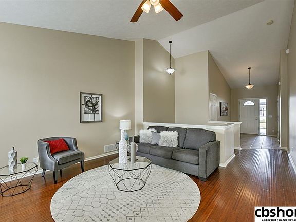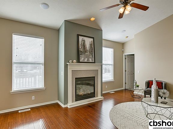 Spectacular Walkout Ranch in Popular Oakmont! Open floor plan with vaulted ceilings, bamboo wood flooring, modern colors, & gas fireplace. Spacious Kitchen features upgraded maple cabinets, granite counters, SS appliances, center island, tile backsplash, tile flooring, and pantry space. Dinette opens to 12x12 deck and fenced backyard. Master Suite has double vanity, tub, shower, & walk-in closet. Full finished Lower Level with Rec Rm & 3/4 Bath. Move-in Ready & Millard West School District.