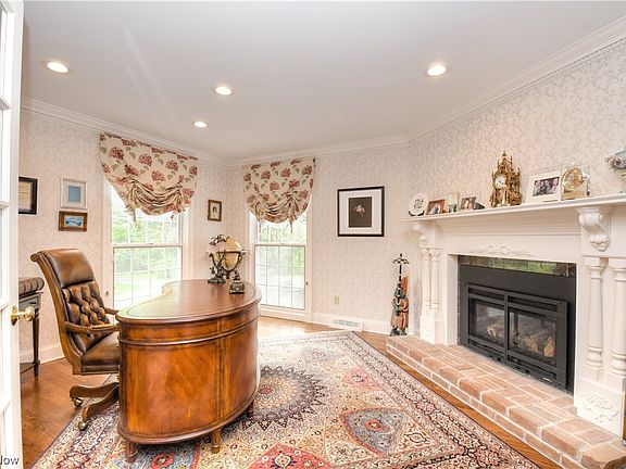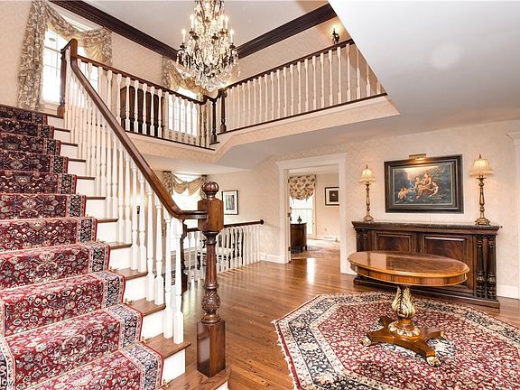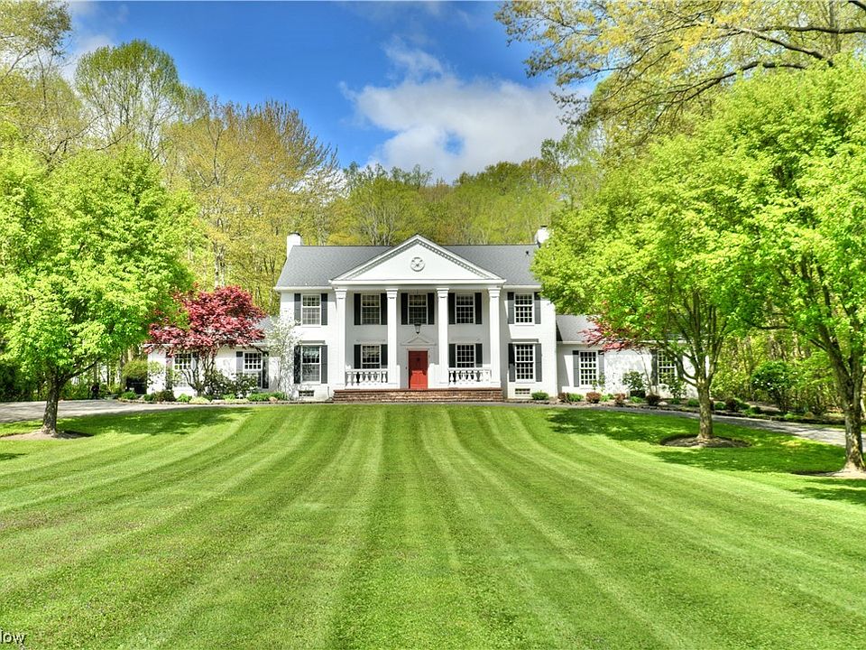 Located on the most magical street in the heart of Gates Mills within walking distance to the Hunt Club, this stately pillared Georgian is truly beautiful! Set back off the street with a long private circular driveway, this home has a presence that is truly amazing! The impressive front porch opens into the gracious two story foyer which features a reverse staircase with a beautiful window. You will love entertaining in the large gracious formal living room and elegant dining room which features a bay window overlooking the park like back yard! The kitchen is a gourmet's dream featuring a huge center-island with built-in breakfast bar, granite counter tops, stainless steel appliances, and custom cabinetry! Located next to the kitchen is the incredible family room which features a vaulted two story ceiling, dramatic fireplace, and opens onto a glass walled sun room! In addition, there is a library with fireplace as well as a first floor laundry room! The second floor has 4 bedrooms and