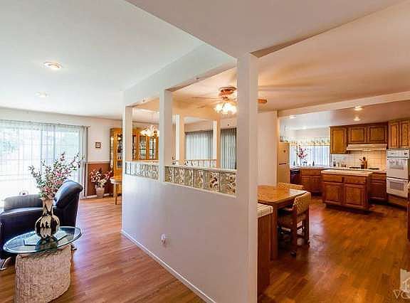 Great location on this well-maintained one story Kingspark with 3 bedrooms and 2 bath home. This home has a spacious open floor plan with laminate wood floors, scraped ceilings, recessed lighting and newer dual paned windows and sliders. Kitchen has plenty of cabinets, great counter space, moveable kitchen island and is open to the breakfast nook. Outside is an spacious entertainer's yard with covered patio and outdoor lighting, outdoor kitchen with built-in BBQ, outdoor sink with hot and cold running water and a swimming pool to enjoy. Electrical panel has been upgraded as property does have solar. Great central location near shopping, schools and restaurants.