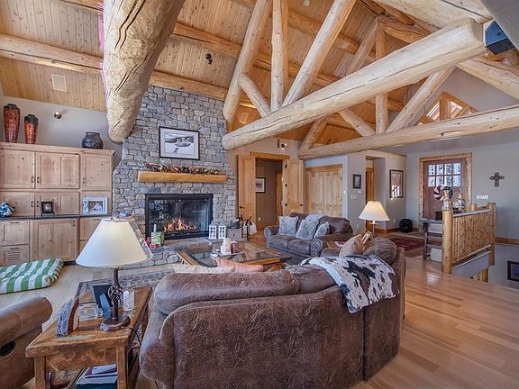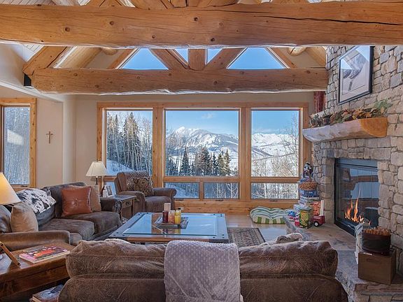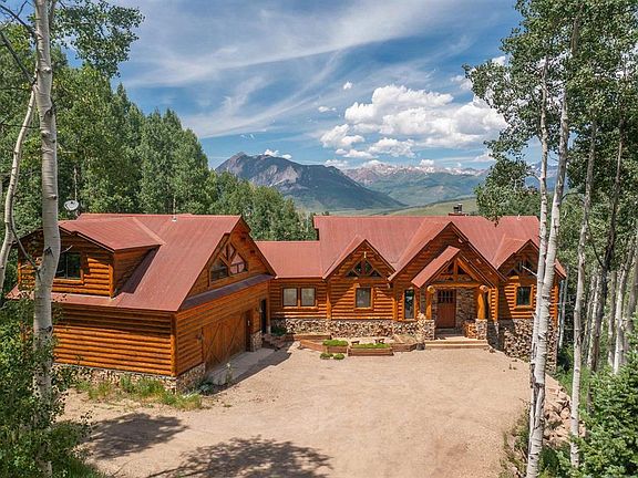 Welcome to 1894 Red Mountain Ranch, an exquisite log home nestled amongst the aspens. This home boasts rustic charm, stunning mountain views and located on 35 acres, giving you privacy and tranquility, yet just a short drive to the historic town of Crested Butte. The main level features a gourmet chef's kitchen with granite countertops and an exquisite AGA range oven. The open-concept living and dining area has an impressive stone fireplace, beautifully crafted beam details, and the mountain views we all covet. The first primary bedroom located on the main level is spacious and inviting with a custom designed bathroom. The second owner's suite, recently updated, is located above the garage. This private, extra-large bedroom has an additional room that can be used as an office, extra sleeping area, or workout room. The renovated spa-like bathroom is a true oasis, with an oversized soaking tub and beautiful wood and tile details. The lower level hosts two additional bedrooms, each with its own bath and a recreation room with a delightful, entertaining area with a bar and butler's pantry. Not to be missed is the four-season porch, where you can relax by the fire-pit or grill your favorite meals all year round while enjoying the stunning mountain views. If you have been looking for a true mountain log home with views, privacy, and custom design and details, then look no further - your new home awaits you!