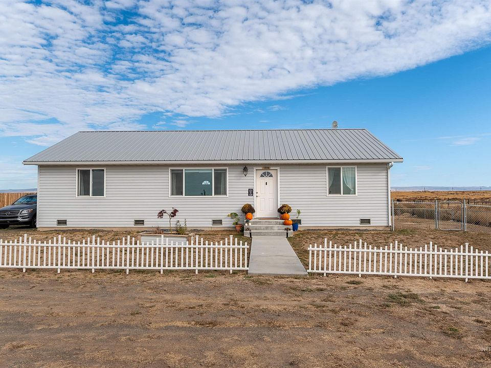 This super clean and inviting 2020 build offers 3 bedrooms, 2 bathrooms, and 1,440 sq. ft. of thoughtfully designed living space on a full acre. The home feels fresh and modern, yet cozy and comfortable--perfect for first-time buyers or anyone ready to enjoy a little more elbow room just outside of town. The open floor plan makes entertaining easy, with plenty of natural light. You'll find a few young fruit trees already in place, and with a full acre to work with, there's room to create the outdoor space of your dreams--from a garden, to pasture, to a future shop or garage. Enjoy the peace of country living while still being conveniently located between Gooding and Bliss. This cute small acreage property is an amazing opportunity to get out of town and start building the lifestyle you've been dreaming about. Kangaroo doorbell camera included.