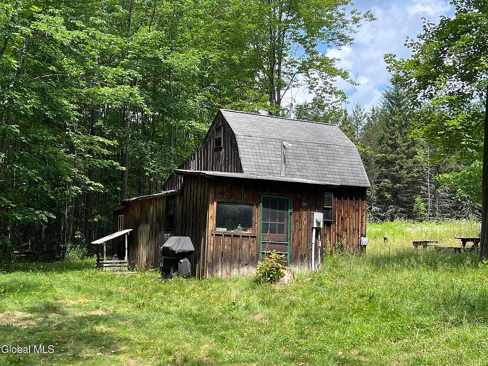 3 Room rustic camp on 30+ acres of wooded land. Cabin has a well, a newer electric panel, and a septic. Includes a large storage shed.