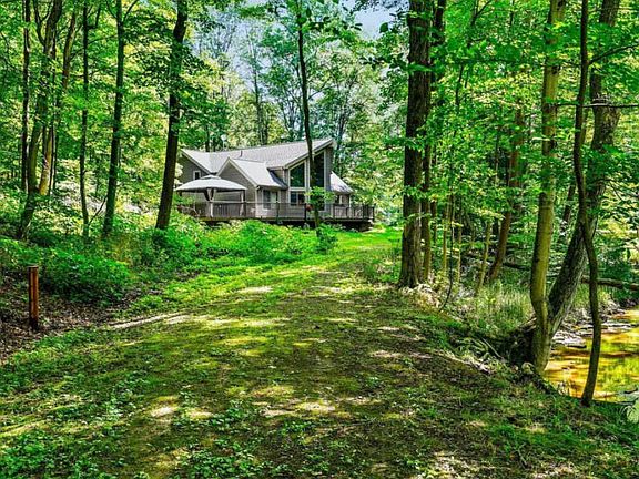 BEAUTIFUL CUSTOM HOME ON 2.74 WOODED ACRES! 2 bedrooms, 2 bath, Upstairs bedroom is a loft bedroom, huge rec room with wet bar and hardwood flooring. Excellent for entertaining. Beautiful wrap around wooden deck with hot tub. 2 car attached garage with doggie door to the fenced in area outside. Enjoy the clearing with a fire pit for those get togethers and relaxing evenings around the fire. Many updates: New geothermal system in 2015, new water heater in 2014 new siding in 2014, complete first floor bathroom remodel in 2013, new roof in 2014, new carpet in 2017 and new concrete drive slab and side walk and deck newly re-painted in June of this year.
