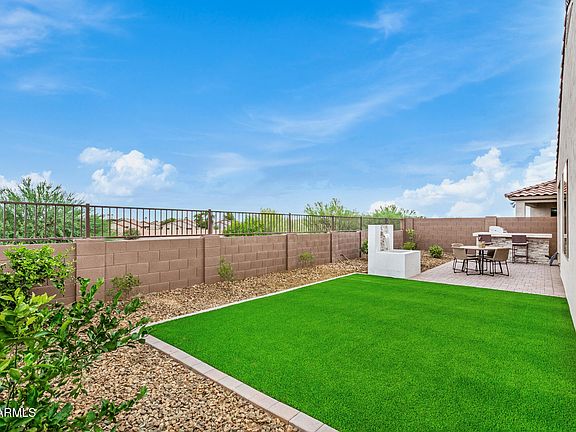 Better than new! This stunning 4-bedroom, 3-bath home built in 2023 sits on a premium lot backing to a greenbelt with beautiful mountain views. Fully furnished and upgraded throughout, it features elegant tile flooring in every room, abundant natural light, and an open, inviting layout. The gourmet kitchen boasts granite counters, stainless steel appliances, ample cabinetry, and a large island with breakfast bar. The primary suite includes dual sinks and a spacious walk-in closet. Enjoy a private backyard retreat with covered patio, built-in BBQ, and tranquil waterfall. Extended-length and height garage. Community pool, parks, walking trails, recreation center, and close to shopping and dining!