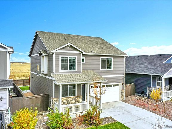 Unbelievable opportunity in Settlers Crossing! Better than new home where everything is already done - all you have to do is move in. Stunning back yard with extended patio, maintenance free turf and custom lighting creates the perfect setting to soak in all the magic that Colorado offers. Wide open floor plan where the kitchen is the center of this special home which connects both the dining & family rooms seamlessly - ideal for both everyday living or hosting parties & holiday events. The beautiful kitchen boasts granite countertops, subway tile backsplash, gas range and a large island with seating for 4. The family room has a stunning custom built-in entertainment wall. There is also a main floor office space and convenient guest powder bath. Upstairs you will find the spacious primary bedroom with ensuite bath and expansive walk-in closet. There are 3 additional secondary bedrooms, a full bath with double vanities and best of all a 2nd floor laundry room. Out back everything is done - landscaping, fencing, turf are completely finished and ready for your fall barbeques or a special evening around the fire pit under the glow of numerous string lights. All this plus everything you typically have to still pay for with a new build is already included: All window blinds, kitchen refrigerator, back yard landscaping and fencing. Central AC, Radon Mitigation, South facing driveway, Deako Smart Lighting switches throughout entire home, Smart Home IQ panel controls door locks, garage & lights, water softener system installed, Arlo security cameras/doorbell - this home has it all. Hurry!
