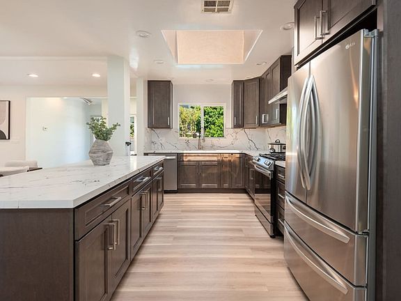 Indulge in the ultimate luxury at this newly renovated 4-bedroom home. Step into the modern and spacious living area, where sleek design meets comfort, and enjoy the gourmet kitchen outfitted with stunning marble countertops, ideal for preparing culinary delights. Each of the four cozy bedrooms is thoughtfully designed to accommodate up to 8 guests, offering the perfect blend of relaxation and elegance, making this home a sanctuary of comfort and style. Step outside and soak up the charm of the expansive backyard, where a large, sparkling pool is framed by lush greenery and inviting loungersideal for relaxation and fun. The spa-like bathrooms, featuring marble showers, offer a rejuvenating escape. With a spacious yard perfect for outdoor activities and secured parking for added convenience, this home is designed to elevate your stay. Pool fee is $200 per day and hot tub fee is $150 per day. When you're ready to explore, you're just a short drive from top attractions like Universal Studios Hollywood, the Hollywood Walk of Fame, trendy Ventura Boulevard boutiques, and the iconic beaches of Santa Monica and Malibu. House rules include no smoking, no pets, and no parties or events. Check-in is at 4 PM, and check-out is at 10 AM. Early check-in and late check-out may be available upon request. The home is equipped with smoke detectors, a carbon monoxide detector, and a first aid kit for your safety. The property is professionally cleaned and sanitized before your arrival, ensuring a safe and comfortable environment.