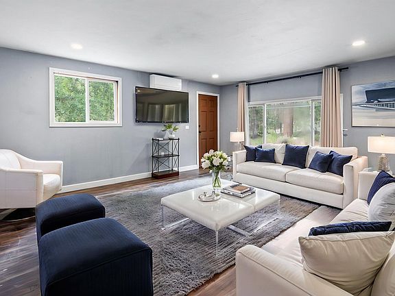 Discover this charming updated single-level home that offers comfort, flexibility, and room to grow tucked away on a spacious 0.89-acre lot. Originally a 3 bed/1 bath ranch-style layout, the garage has been converted into a private primary suite with a full bath, walk-in closet, and its own heating/cooling—need a guest space, studio, or rental? This area can easily be used as a flex room with its own private entrance. The home features 1,732 sq. ft., and a detached double garage with separate workshop space that could be reopened for additional parking. Outside, enjoy the expansive deck, a cozy fire pit on the back patio, and a large backyard that transitions into untouched natural space—ideal for an ADU or simply enjoy privacy, mature trees, and room to roam—just minutes from town. Don't miss this versatile property with endless potential.