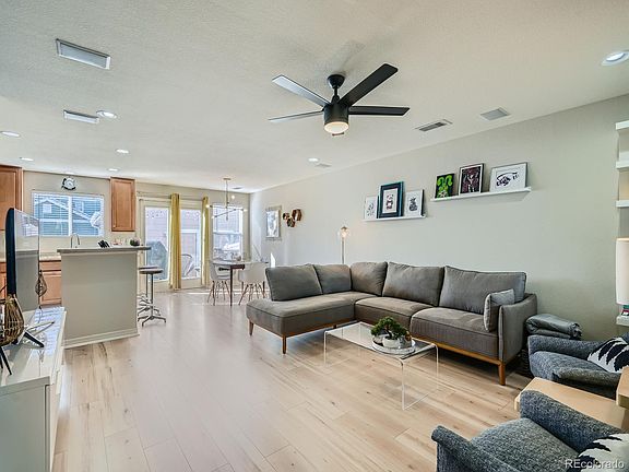 Get here fast! Great deal on this fresh and bright updated townhouse in desirable First Creek neighborhood* 3 beds and 3 baths* Open main floor plan with modern boutique feel! *Spacious living space with updated ceiling fan/lighting* Luxurious new wide plank white-oak wood-finish LVP floors throughout main level* Dream kitchen features stainless steel and black appliances, stylish 42” cabinets with pullouts, two-level island great for prepping and entertaining, and a roomy built-in Pantry *Lots of storage under the stairs through pantry access *Surround sound system *Heated floors at front door entry and in the kitchen *French doors *Grand Primary Suite with full bathroom, walk-in closet, storage galore* Laundry in unit, Washer/Dryer included *Detached 1 car HEATED garage, plus reserved space next to garage* Covered front patio perfect for morning coffee *Fenced-in private back yard with low maintenance deck perfect for grilling, relaxing, container gardening, and entertaining! *Walk to shops, groceries, restaurants* 6 minute bike or faster drive to LightRail RTD Station just 1.3 miles* Easy access to E-470, Pena Blvd, DIA, and public transportation. Must see!! This is the home you’ve been waiting for!
