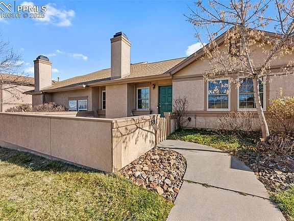 Move-in ready and beautifully remodeled, this 2-bedroom, 1-bath townhome offers modern updates, mountain views, and a convenient Colorado Springs location. Nearly every surface has been updated within the last three years, including a full kitchen renovation in 2021 featuring quartz countertops, stylish cabinetry. Hardwood floors flow through the living spaces, with cozy carpet in the primary bedroom. The bathroom was fully updated in 2025 with new tile flooring, matching tiled shower surround, vanity, and lighting. The primary bedroom has direct access to the bathroom, offering privacy and convenience. The home feels bright and open thanks to added recessed lighting and a gas fireplace that anchors the main living area. Recent mechanical upgrades include a new hot water heater (2025) and a new garage door and opener (2025). Enjoy both a private front courtyard and a rear enclosed patio—perfect for morning coffee or container gardening. From the living room and primary suite, take in mountain views that bring Colorado living to life. With a 2-car attached garage and a low-maintenance layout, this home blends comfort, style, and convenience in one turnkey package.