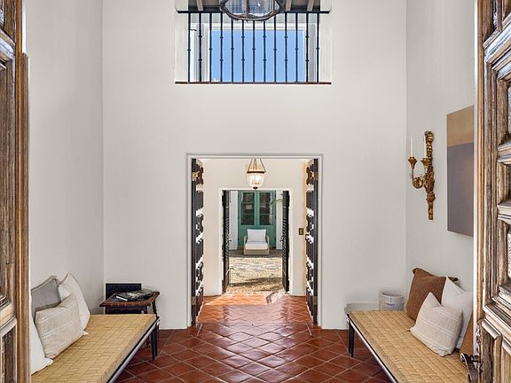 This iconic Mary Craig masterpiece is one of Montecito's few original Spanish Colonial estates, set on 2.8 gated and fenced acres just outside the upper village. Overlooking the Valley Club, the home offers ocean and mountain views. A meticulous restoration has preserved its grandeur while adding modern luxury featuring a grand entryway, a remodeled kitchen w/ Miele and Viking appliances, a butler's pantry, formal dining and living rooms w/ fireplaces, a breakfast nook, a media room, a ground floor primary, 5 additional bedrooms & 6.5+ bathrooms. The original central courtyard provides a serene retreat, while the oversized pool, tennis court, motorcade, 3-car garage w/ quaint guest quarters above, rooftop deck, and expansive terraces create an entertainer's dream. Available 6+ months