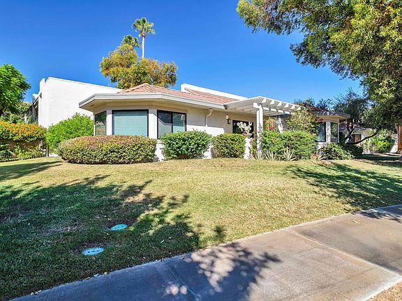 Paradise Found! LOCATION, LOCATION, LOCATION! Beautiful and perfectly maintained Riviera Gardens Bungalow! Single level end unit enveloped by green space and nobody above, these condos rarely come on the market with only 36 in the community. Conveniently located near Downtown Palm Springs, shopping, restaurants, boutiques, museums, parks, and more. This charming gem of a property is a wonderful and serene escape to live in full time, part time, or vacation. Upgrades include NEW carpet, paint, beautiful ceiling fans, dual pane windows, updated master bath, and remote controlled automatic light filtering and dimming Levolor Blinds. Abundant closet space and storage, updated recessed lighting with stylish sconces. Amazing natural bay window light, open plan, 2 master suites, patio with trellis to enjoy morning coffee or evening festivities with friends, food, and drinks. NEST and added ceiling insulation allows for low energy costs. HVAC has been under a yearly service and maintenance plan since owner purchased in 2017, and are in excellent condition. Highly desirable and spacious home on fee land, gated community, 4 beautiful pools and spas, perfectly maintained and surrounded by lush landscaping, trees, flowers, and breathtaking mountain views, 1 assigned carport and ample guest parking behind the gates or on the street. Located on Via Miraleste with gorgeous views, million dollar homes across the street, and incredibly quiet with no noise from Margaritaville or Vista Chino.