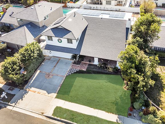 Charming 4-Bedroom, 4-Bathroom Home with ADU for Rent in Porter Ranch. Welcome to your dream home! This spacious 4-bedroom, 4-bathroom newly renovated residence includes a separate Accessory Dwelling Unit (ADU), offering versatility for extended family, guests, or potential rental income. Located in the highly desirable school district that includes Granada Hills Charter, this 4 bedroom, 4 bathroom, Spanish style home boasts nearly 2,400 sf of living space on a 7,748 sf lot. A spacious covered front porch with terracotta flooring welcomes you. The formal entry boasts 2-story ceilings and opens to the formal living room featuring a brick, center fireplace and floor-to-ceiling window that provides an abundance of natural light. The formal dining room opens to a cozy family room & sliding glass doors that open to the back patio. The modern kitchen has a gas cooktop, range hood and window over the sink looking out to the pool. A bathroom and dedicated laundry room complete the main level. All bedrooms located upstairs. There are 2 master bedrooms with an en-suite bathroom each and 2 more bedrooms sharing one bathroom. An entertainer's dream, the backyard showcases a covered patio & sparkling inground pool & spa. Excellent opportunity to design the space of your dreams, or move right in. The house has a brand new roof with paid off solar panels and electric vehicle charging station. The home is fully furnished. Great location near shopping, dining, outdoor recreation, and nearby access to the 118 freeway.