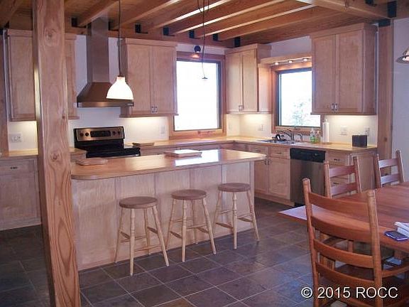 Family Retreat. Very high quality home with "Post & Beam Architecture??. 8 bunk beds, several bookshelves, window seating areas, desks, dressers, & other fixtures are "built-in", creating a clutter-free space. This energy efficient home offers all Slate tile flooring with in-floor heat! The custom wood hand railing, wood stairs, sky lights, metal roof work to make each area of the house special. All Stickley furniture, wood blinds, bedding & linens are included. Use of Trail West Swimming poo
