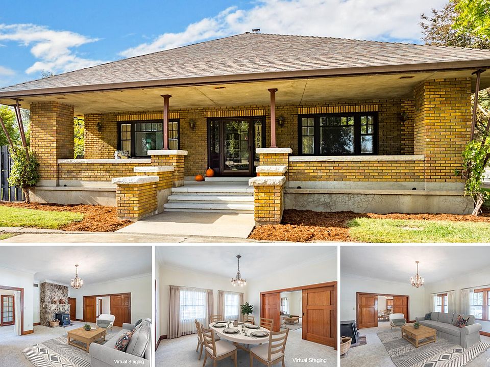 Stately, traditional brick home with beautiful rocked circular drive, extra deep, full length covered front porch and mature, lush landscaping on an oversized lot. This home boasts quality throughout with extensive crown molding, wood trimmed windows and doors and custom built ins. Spacious country kitchen with granite, SS appliances and adjoining dining space. Formal dining room, primary bedroom with ensuite bath and 2 additional bedrooms that share a jack and jill bathroom. Fenced backyard, fruit trees and workshop.