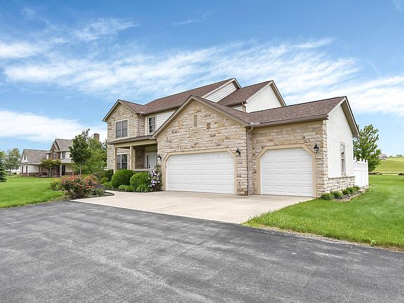 Upstairs, you'll find four generous bedrooms, including a luxurious owners suite with double vanities, a walk-in shower, garden tub, and large closet. The additional 3 large bedrooms offer great space and exceptional closet space. Step outside to enjoy massive concrete patios, ideal for outdoor entertaining. This lovely property also includes 3 car attached garage, large heated pole barn-perfect for hobbies, a workshop or additional storage, full basement and storage shed. Located in a peaceful location, this property combines comfort, style, and convenience close to Columbus, Lancaster. Recent updates include roof 2024, exterior paint, driveway 2020.