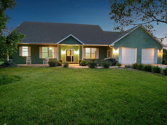 4 bedroom, 3 bath one level walk out home on 2+ acres on a cul-de-sac. 2 attached garages (lower level Heated) 3+ stalls. In floor heat in lower level. Open floor plan on main level with gorgeous wood burning fireplace. Large master suite with walk in closet, soaking tub, and tiled walk in shower. Lots of storage. This home is a must see.