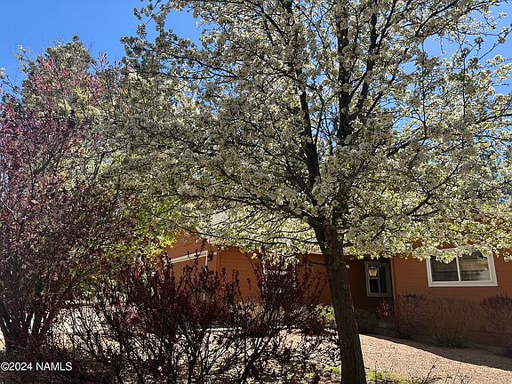 FRESHILY PAINTED INERIOR living space, Brand NEW ROOF in JULY, newer HOT TUB, AND AC for summer heat...WOW! This meticulously maintained custom home is located in the picturesque neighborhood of Boulder Point, close to NAU, shopping, and downtown Flagstaff. Upon entering this single level home, it unfolds into an open floor plan that offers a seamless flow between living spaces. The great room boasts a vaulted ceiling, custom shutters, and a cozy gas fireplace. With a center island, the kitchen layout is ideal for any cook. The primary bedroom also has a vaulted ceiling, complemented by an updated ensuite and walk-in closet. The guest bathroom showcases a granite countertop and copper sink. All of these wonderful features plus the backyard includes trex decking and fruit producing trees!