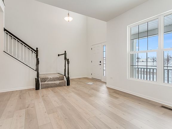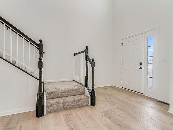 READY NOW! Lot 1.The Dunbar is a beautiful floorplan with almost 2,500 square feet, four bedrooms, two-and-a-half bathrooms, a convenient second-floor laundry room, and a three-car garage. The two-story foyer greets you upon entering the home, with the flex space to your side. You can use this flex space as a home office, kids' play room, formal dining room or whatever best fits your family's needs. As you walk through, there is a coat closet and powder room fittingly tucked away. The kitchen is spacious with abundant white colored cabinetry, quartz countertops, and a center island that overlooks the breakfast area with a breakfast bay, and family room with a fireplace. The kitchen also features a walk-in pantry and is conveniently located next to a separated mud room, which serves as the owner's entry from the garage. Walk up the stairs and you'll notice the hall bath with dual sink vanity is centrally located between the bedrooms, each with ample closet space. The laundry room is also adjacent to the bedrooms, which makes putting away clothes that much easier. The owner's suite has an angled wall entrance-perfect for a dramatic entrance to your retreat. The luxury owner's bath, is equipped with a dual sink vanity, designer tiled shower and a soaking tub to relax the days stresses away. Rounding out this home is a full basement.