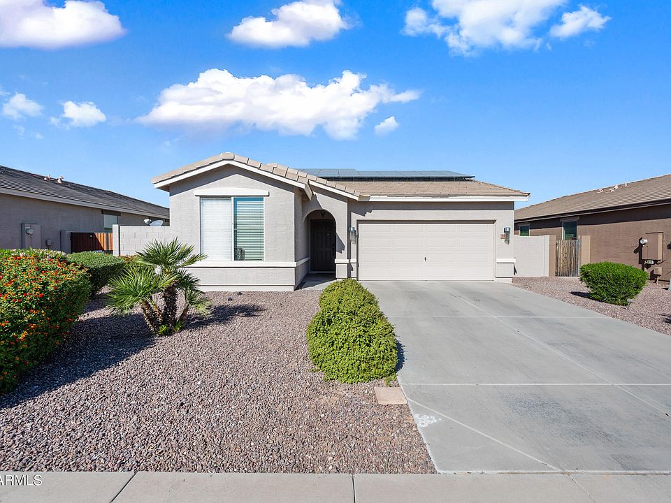GREAT PRICE on this beautiful home in Morning Sun Farms! SRP POWER BILL is only $96 EVERY MONTH with solar panels! Solar is $65 + SRP is $31 = $96 per month - with REBATES on top of that sometimes!!! Great kitchen with beautiful, staggered white cabinetry, newer stainless steel appliances, disposal replaced, pantry, and lovely breakfast bar with pendant lighting. Ceiling fans in every room, separate garden tub and shower in the main bedroom, water softener, linen closet, and beautiful, LOW MAINTENANCE yard front and back. Recent major expenses include the rear half of the TILE ROOF REPLACED, the EXTERIOR STUCCO REPLACED AND PAINTED, and irrigation pipes and valves between the street and the house were also replaced due to fiber optic installation damage. Continued... Beautiful large neighborhood park with smaller park areas throughout Morning Sun Farms! Owner keeps water softener turned off due to salt avoidance. Security system/doorbell is also turned off for privacy reasons. Water softener and security system are not warranted for that reason - conveying as is.