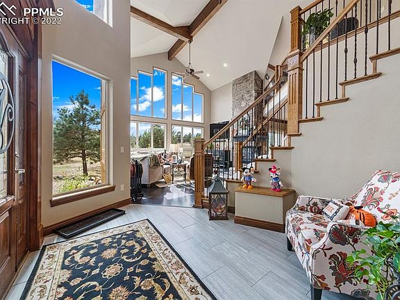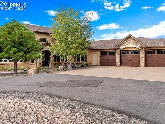 Make your dream of Colorado lifestyle living come true. Rare main level living custom home is on a beautiful 2.5 acre lot in exclusive Tall Pines Ranch. Have cars and toys? There is an over-sized 3 car garage and additional 3 car under-garage with separate paved drive. As you enter the circular driveway you will be greeted with majestic 2 story windows and entry that drench the home with natural light. Inside you will enjoy 2 expansive walls of windows in the great room that is open to the gourmet kitchen w/36" gas range and convection oven. There is an additional convection wall oven and warming drawer. The spacious main level master suite features double doors, coffered ceiling and walks out to the deck. The 5 piece master bath has a large jetted soaking tub and walk in shower.The huge master closet also connects to the large laundry room. The main level office features double french doors, built in shelves and a window seat. Formal dining room has coffered ceiling and custom lighting. Upstairs the large loft overlooks the great room and also has great views of the private lot. There is a junior suite upstairs as well as 2 additional bedrooms with a jack and jill bath. In the walk-out basement you are welcomed with a wet bar complete with new wine fridge. The large family room walks out to the patio and features a fireplace and large wall for a theater system. 3 more bedrooms finish out the basement along with a 3/4 bath right off the under-garage to clean up after you spend the day playing with your toys. There is also a large storage / utility room. Other features include 3 furnaces, one for each floor. The main and upper levels also have A/C.
