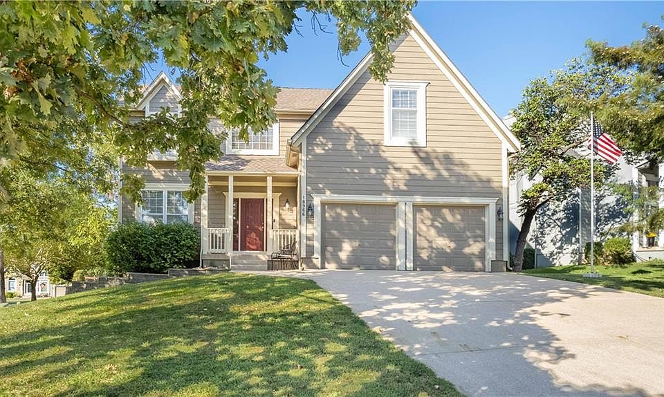 Perched atop a corner lot in the back of the coveted Northwood Trails Neighborhood, this 2-story is packed with ALL the upgrades and trimmings. Pride in ownership shines through every space from this one owner home. Love the outdoors? With this home's incredible custom sunroom addition, large covered porch, and tiered stamped concrete patio you can enjoy a low-maintenance retreat designed for outdoor leisure or entertaining guests all year long. As you step inside, you’re welcomed by soaring ceilings, and rich hardwood floors that flow seamlessly into this open-concept space. The kitchen transitions effortlessly into a spacious great room, where a striking fireplace creates a warm and inviting atmosphere. Formal dining room could easily be used as an office. Upstairs, an oversized master closet offers abundant storage, complemented by a generously sized hall bathroom and upstairs laundry room for added comfort and convenience. Light neutral tones throughout the interior lend a fresh, sophisticated charm, ready for your personal touch. The unfinished walkout basement expands your possibilities, featuring a RARE 3rd car side entry garage door... SO many opportunities for a hobby space / boat storage / home business... tailor it to your unique lifestyle! Never shovel snow again thanks to your southern facing driveway! Situated in a mature neighborhood, this home provides access to a refreshing community pool, picturesque trails—including the Gary Heller trailhead at the back, perfect for outdoor adventures—and a serene lake that enhances the natural surroundings. Served by the esteemed Olathe School District and just minutes from shopping, dining, and entertainment options, this move-in-ready property combines modern upgrades with timeless appeal. Don’t miss your chance to own this Northwood Trails gem—schedule a private showing today and envision the life that awaits you here!