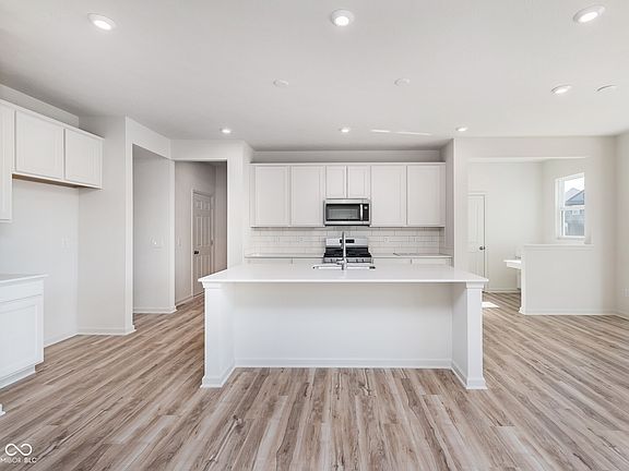 Step into the thoughtfully crafted Hilltop floorplan, where every detail is designed to enhance your lifestyle. The journey begins with a welcoming foyer that flows seamlessly into the open gathering room, perfect for relaxation or entertaining. Adjacent, the beautifully designed kitchen boasts 42" creamy white cabinets, Frost White quartz countertops, island and stainless gas appliances, all connecting effortlessly to a casual cafe dining area. A formal dining room sets the tone for special occasions, while a flex room offers versatile space tailored to your needs. Additional conveniences include a Pulte Planning Center and an Everyday Entry that streamline your daily routines. Upstairs, retreat to the serene Owner's Suite, complete with a luxurious bathroom and expansive walk-in closet. Three additional bedrooms, each with walk-in closets, provide ample storage, while a central loft offers a cozy hub for relaxation or recreation. Irrigation system for easy outdoor maintenance. Lancaster's premier location offers unparalleled access to the Monon Trail and top-rated Westfield-Washington schools. Enjoy community amenities such as a pool, shade pavilion, wading pool, playground, athletic courts, and the scenic Trailhead Park. Situated near Grand Park Sports Complex and the upscale shopping and dining of Clay Terrace, this home combines comfort, convenience, and style. Minutes from US-31 and Downtown Westfield, this stunning two-story home is more than a residence - it's a lifestyle. Don't miss the opportunity to make it yours!