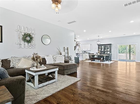 Breathtaking custom-built ranch home/barndominium on a 12+ acre estate with barbed wire fencing! Stunning wrap-around porch with panoramic views! As you step inside, you'll notice the wide open floor plan and natural lighting. Gourmet country kitchen, custom painted cabinets, pantry and oversized island! 3 bedrooms, 2 full bathrooms, 2 car garage! Master suite with a huge walkin closet, vanity, including bathtub and tile shower. Absolutely stunning property...must see!!