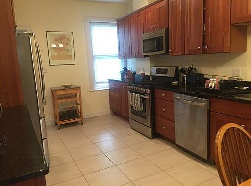 FOR RENT - Stunning + sophisticated 3 bedroom, 2 bathroom on top floor (3rd) in brownstone building near shops, restaurants and C/D green line train to Longwood Medical + downtown Boston. High end renovations w classical details throughout, chef's granite/stainless kitchen, cherry cabinets, modern baths, central air, high efficiency Rinnai hydronic heating/hot water on demand system, energy efficient windows, high ceilings, wood floors, deleaded, no parking included but 2 outdoor rental parking spaces available +$200/space per month extra, cats ok, avail June/July for minimum one year lease.