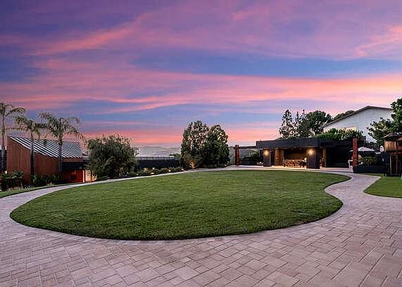 Custom and contemporary estate in Lynn Ranch - an architectural masterpiece! Enjoy panoramic canyon views and breath-taking sunsets from the serene back decks, lawn, custom built-in BBQ center, or fire pit. (Property owner will install above-ground spa in backyard gazebo, if desired.) Located on a cul-de-sac, this privately-gated ~1 acre home allows for massive entertaining. The huge front lawn is paired with an amazing cabana/outdoor kitchen, featuring 2 refrigerators, BBQ/grill, pizza oven, seating, fans, and fire pit. No expense was spared in the interior of this true single-story. A dramatic hallway with a 56 ft skylight leads to the recently-remodeled primary retreat, featuring 2 enormous custom closets. The brand-new primary bathroom has a soaking tub and picture window, dual vanities, and gorgeous shower. There are 2 large guest bedrooms that use a newly-remodeled hall bath. A private 4th bedroom has soaring ceilings and a separate entrance from the exterior, perfect for an office, in-law suite, or gym. Newly-remodeled guest bath with contemporary shower stall. The family room has a stacked-stone wall and fireplace and opens to the kitchen. Sunset views can be seen from most of the living areas. The sleek, gourmet kitchen features wood-paneled ceilings, granite countertops, new backsplash, center island, built-in plumbed Miele espresso machine, Miele double convection ovens, new Miele 6-burner cooktop, Fisher & Paykel 2-drawer dishwasher, Miele microwave/convection oven, newer stainless steel fridge, wine fridge, & huge pantry. Other upgrades include fresh interior and exterior paint, new floors throughout, LED lights, remodeled laundry room with quartz countertops, remodeled garage with epoxy floors, long driveway for guest parking, fresh landscaping, new irrigation and outdoor lighting, app-controlled front gates, newer HVAC units and ducting, water filtration system, and commercial-grade wifi networking. This estate is truly one-of-a-kind!